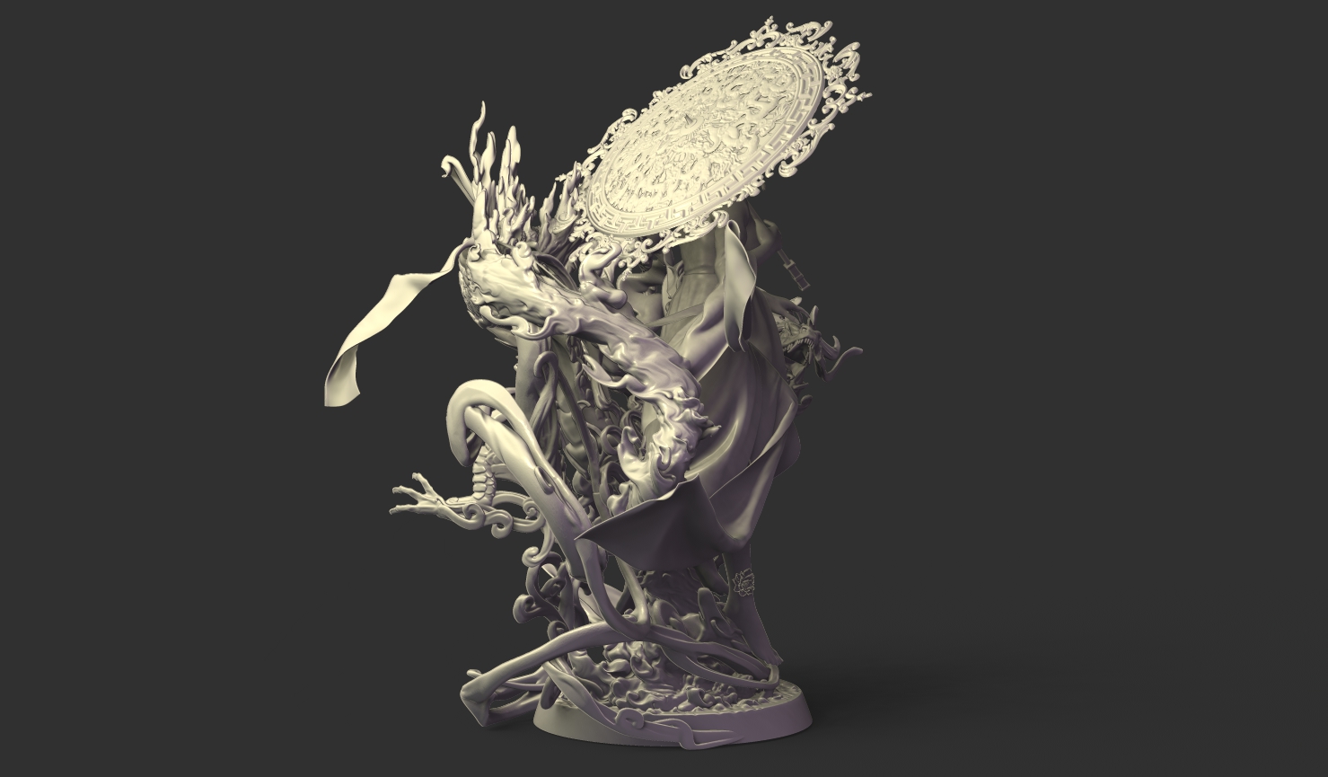 蓝极光国风数码造像艺术工作室由上海电影艺术职业学院数字娱乐中心游戏艺术设计专业创办,以学生原创模式为主体获取IP进行项目的储备和开发,为大学生创业提供新平台。工作室的理念是:燃中国故事,塑国风英雄。学生通过前期原创设计再到高精三维建模及3D打印、后期涂装,把现代雕塑手法与中国传统造像艺术相结合,塑造具有中国语境的现代数码雕塑作品。一方面让大众能够通过图文了解到中国传统造像艺术的精髓,以及那些正能量的中国神话文化中的美育文化,另一方面也能够通过现代数码雕塑技术相结合的方法来呈现更为逼真的游戏手办的途径。