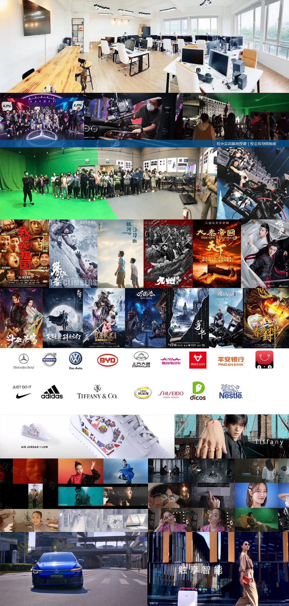 影视制作学院(中心)在教学过程中注重产教融合的发展理念,引入国际影视制片标准开展教学,依托学院(中心)下设编创工作室、制片工作室、影视新媒体工作室、映时代中期工作室、壹点视效工作室、影视后期工作室、影视调色工作室、数字合成工作室,这8个设备条件均与行业一线环境相匹配的制作环境,多年来参与制作影视作品几十余部,包括院线电影、影视剧商业广告、综艺节目等。