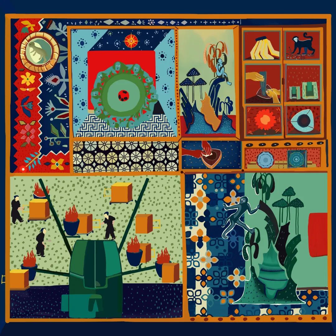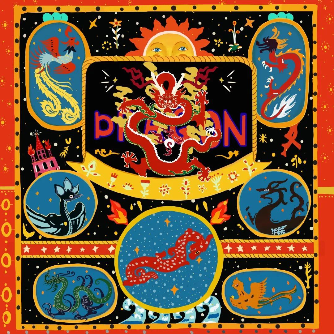 我的海报作品主要元素提取了上海博物馆里的文物,顺序如下《三鼠图轴》,《柳下双牛纨扇页》,《刺绣草间卧虎图》,《庞虚斋抱兔图轴》,《谷纹玉龙》,《父乙觥》,《剔红伯乐相马图笔筒》,《青花松竹梅三羊图碗》,《西汉透雕猴边镶嵌腰带饰》,《青釉刻花双系鸡首壶》,《东汉绿釉陶狗》,《家猪陶塑》,除了这十二件文物也参考了中国古代传统纹样例如吉祥纹样,虎纹,几何纹,花鸟纹,太阳纹等,除了这些我还翻阅了中国经典纹样图鉴,⻘铜器⽂化等书籍,海报中的⾊彩从中国传统⾊谱中提取了⼤量的颜⾊。疫情期间,当在不能去上海博物馆时,⼤家可以通过我的海报作品来了解这些文物的渊源。