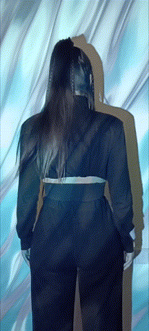 “创造”空间存在于水雾之间,格外静谧。所有物体都以迷幻的晶体形式存在,分散的齿轮开始转动、重组、多元空间撕裂,虚拟穿戴逐渐浮现。延续脊骨构造,从“连接”概念出发,与手相结合延伸出多元创造力。手背上是使用动态轨迹组成的莫比乌斯环,无限的空间富含无限可能与未知。