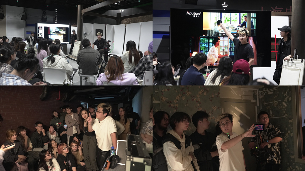 在为期两天的工作坊学习的过程中,学生们得到了充分的理论与实操经验知识。通过肖溥伦老师的指导,他们亲手操作爱图仕的灯光器材,实地体验不同场景下的灯光效果,探讨如何运用灯光创造出独特的影片视觉语言。