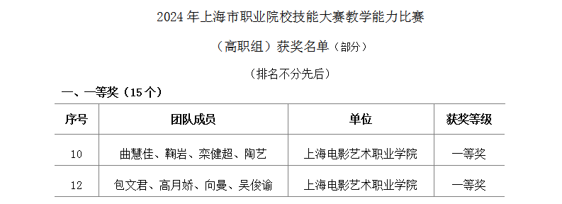 日前,市教委公布了2024年上海市职业院校技能大赛教学能力比赛获奖名单。此赛事汇集了全市20余所高职院校(含职业本科)的精英教师团队,竞争激烈。我校教师团队凭借扎实的专业技能、创新的教学方法和出色的教学表现,荣获高职组两项一等奖。这次获奖体现了我校教师的专业素养和教学实力,展现了学校在华体会手机登录 领域的不懈努力和持续进步。