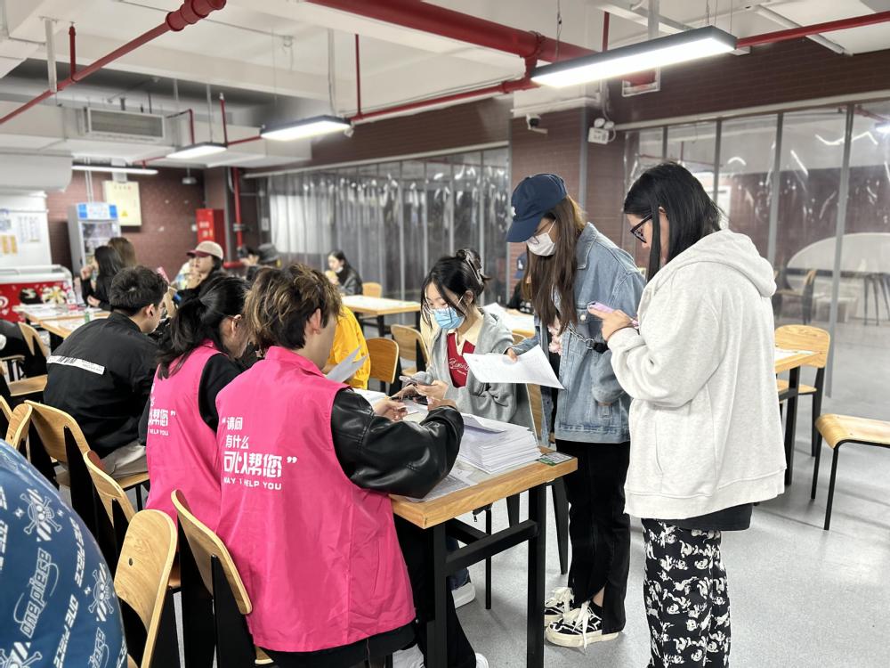 同学们在医护人员和志愿者的引导下,先于负一楼信息登记处填写献血登记表。