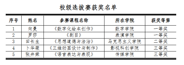 经过激烈的角逐和专家组的严格评审,最终拟定校级选拔赛获奖名单,选派向曼等优秀教师参加第七届上海市民办高校教师教学技能大赛。