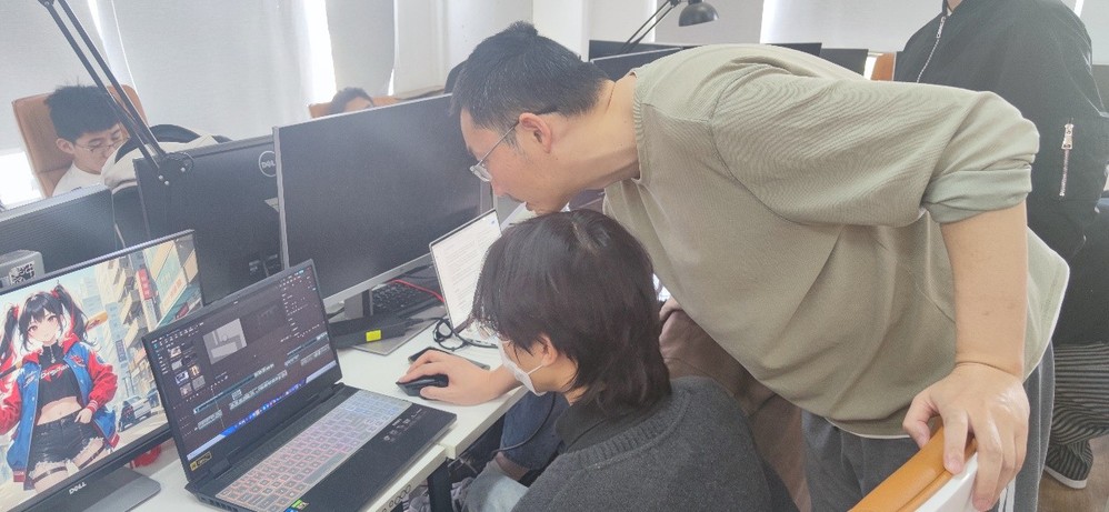 图2 教师结合《商业项目实践》课程辅导学生开展制作