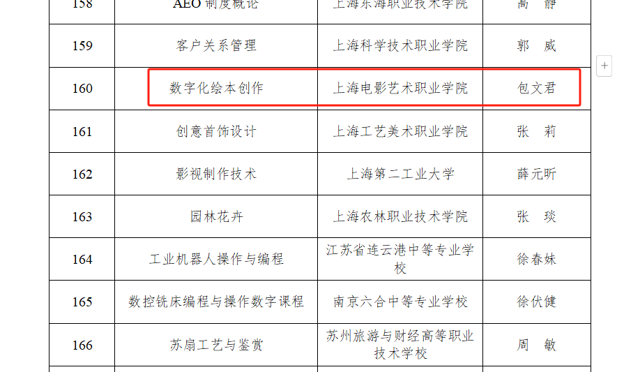 近日,教育部职业教育与成人教育司发布《关于2023年职业教育国家在线精品课程遴选结果的公示》,我校数字学院院长包文君老师团队的《数字化绘本创作荣获2023年职业教育国家在线精品课程,该课程的入选上海电影艺术职业学院数智化教学改革建设中取得的国家级重要标志性成果。