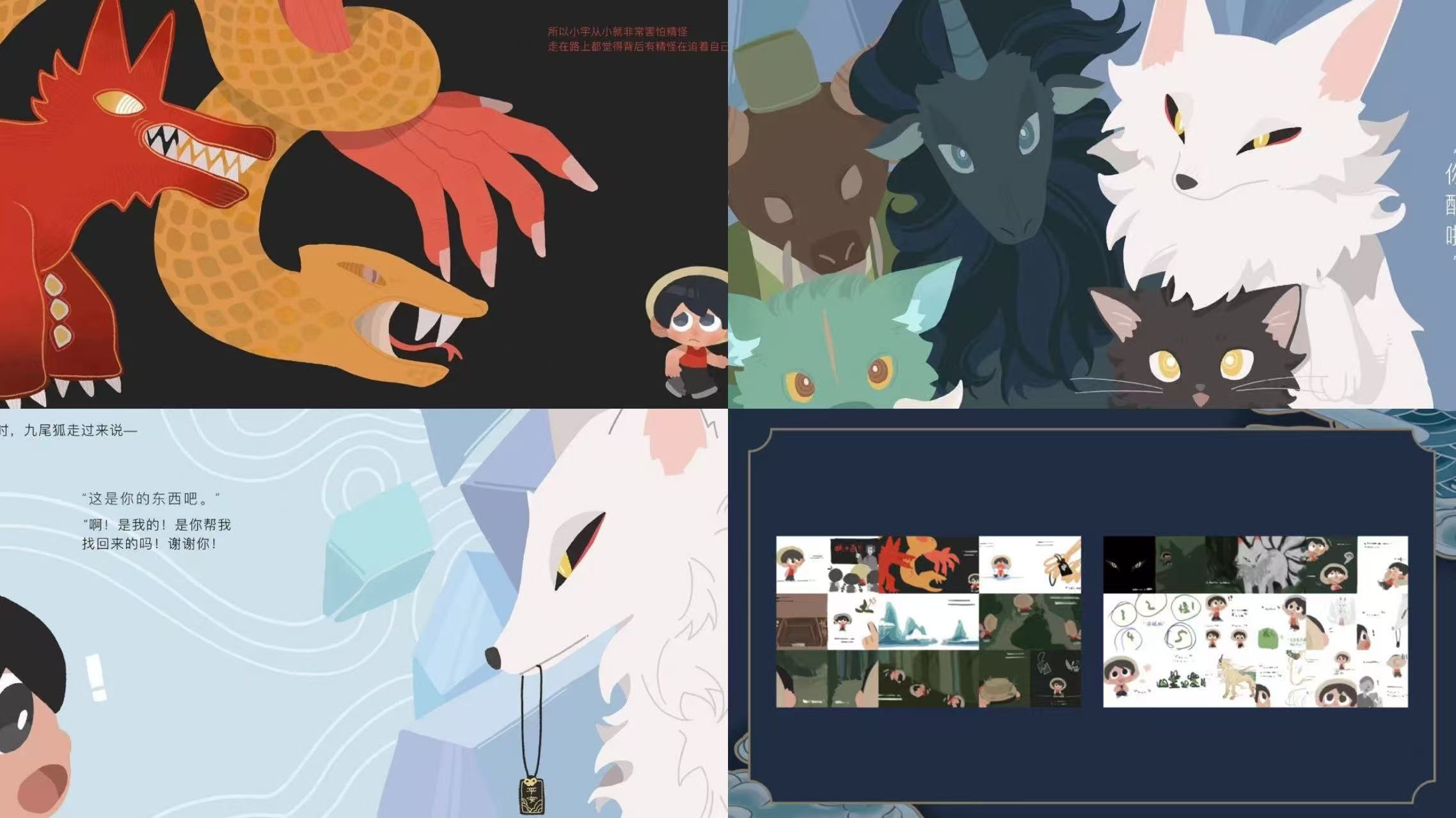 同学们创作的绘本风格多样,各具特色,虽然作品还略显稚嫩,但这些交织着灵气与稚气的作品,恰似春日破土的新芽,碰撞出的不仅是数字艺术的绚烂火花,更是文化基因在 Z 世代笔尖的觉醒与新生。让我们跟随同学们的笔触,走进他们精心构建的奇妙世界吧!