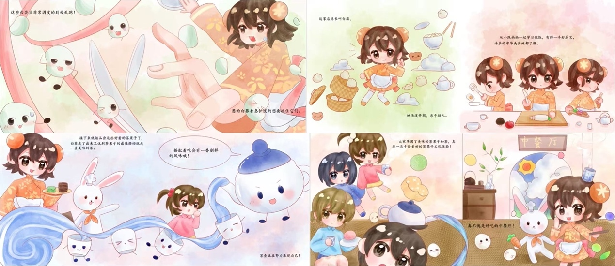 《好吃的中餐厅》绘本创作让我们了解了绘本故事的创作流程和过程。通过介绍茶菓子中华非遗美食,让这个故事更加丰富多彩,以生动有趣的状态展示给大家欣赏阅读。我们两人合作创作绘本中华美食故事,从草图分镜,到最后的成图以及印刷,最后当我们看到绘本成品,很有成就感!也深刻体会到绘本故事的创作不易!