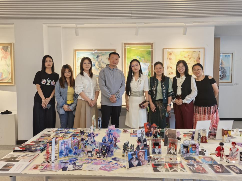 活动启动仪式现场,嘉宾首先于主题签到墙前驻足合影,随后有序移步至展厅观摩2022级中高贯通动漫设计专业转段成果展。展厅采用专业级灯光布设,系统呈现三大创作板块:涵盖动漫原画手稿、世界观概念设定及文创衍生作品在内的数十件展品。展陈内容横跨赛博朋克风格的未来都市构想,延伸至蕴含东方美学的手绘插画创作,其间既有青年学子的先锋艺术表达,亦可见严谨规范的专业技法呈现。教学团队与行业专家在观摩过程中,不时驻足评鉴重点作品,对参展学生展现的创作能力给予高度评价。