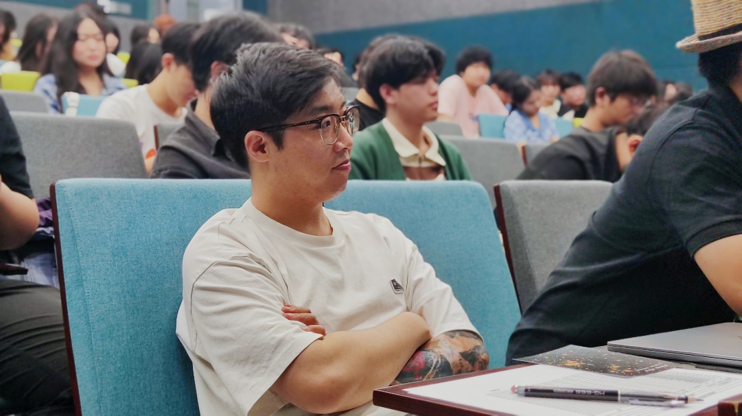 董吉庆同学导演的剧情片《My turn》,参考了《My time》这部影片,揭示了社会中存在的性羞耻的问题并在演讲时很认真的准备了手卡,获得老师们的一致称赞。