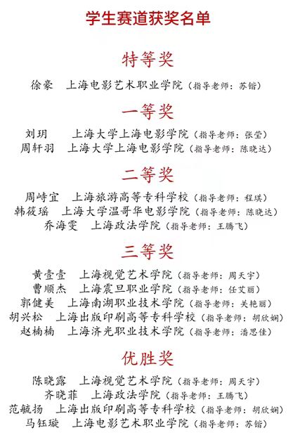 图1 上海市文化影视科技职业技能大赛学生赛道获奖名单