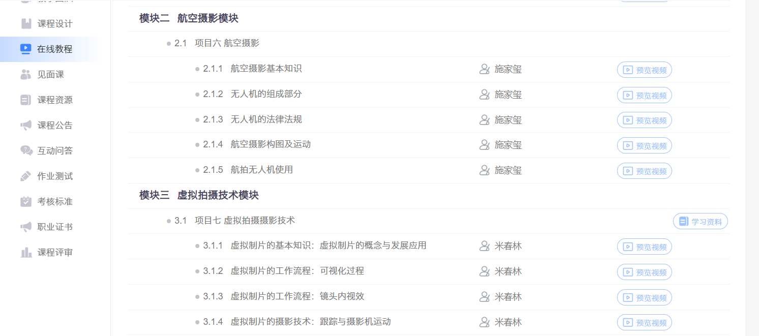 8大教学模块:覆盖设备组装调试、特拍镜头运动设计、航拍路径规划,虚拟拍摄等全流程技术节点