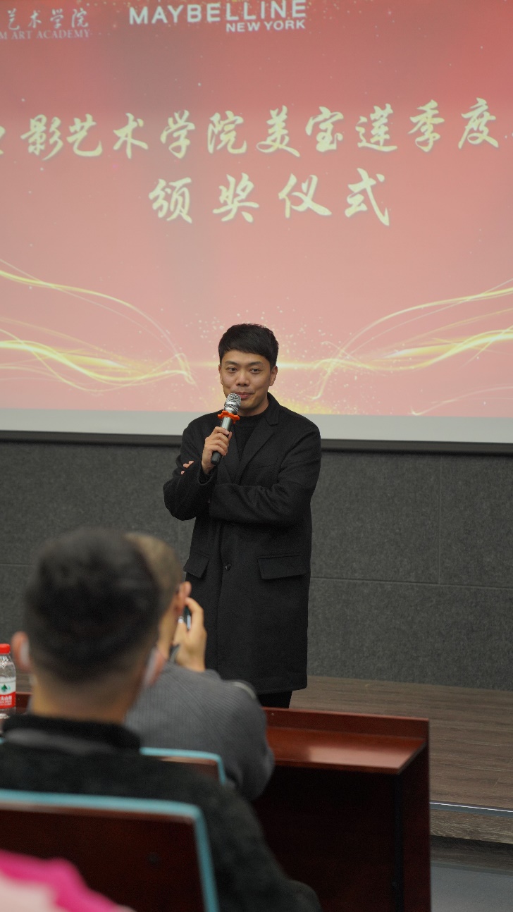 视觉艺术中心主任顾平老师在大会伊始代表学院对获奖学生表示祝贺,对欧莱雅集团及美宝莲品牌表现出的社会责任感表示感谢,并充分肯定了校企合作办学模式。