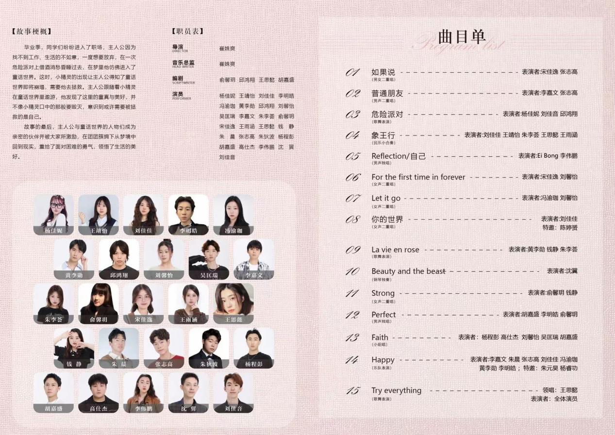正值毕业季的男主人公,面临着找不到工作、生活的不如意,一度想要放弃,在一次危险派对上借酒消愁昏睡过去,在梦里他仿佛进入了童话世界。“梦境和现实的纠缠,多种音乐形式的碰撞”,用演唱、演奏、舞蹈、表演讲述精彩纷呈的故事,用梦幻的色调带来迪士尼的经典盛宴,相信你总会从中体悟到童话的纯真与美好。