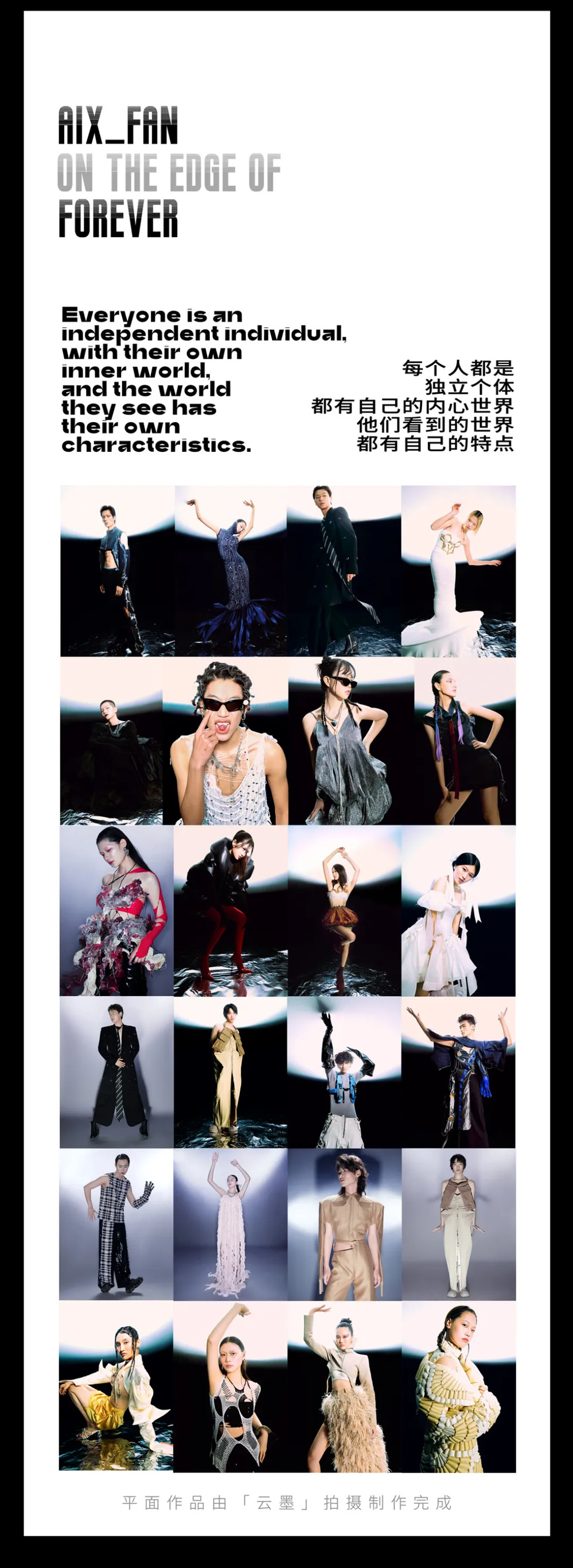 本次毕业秀的主题定为《太初黑洞Primordial Dark Hole》,其灵感来源于毕业班同学们的自身经历与独特视角。每位成员都是独一无二的个体,他们在学院相遇,共度了三年宝贵的学习时光,如今又将各自踏上新的征程。