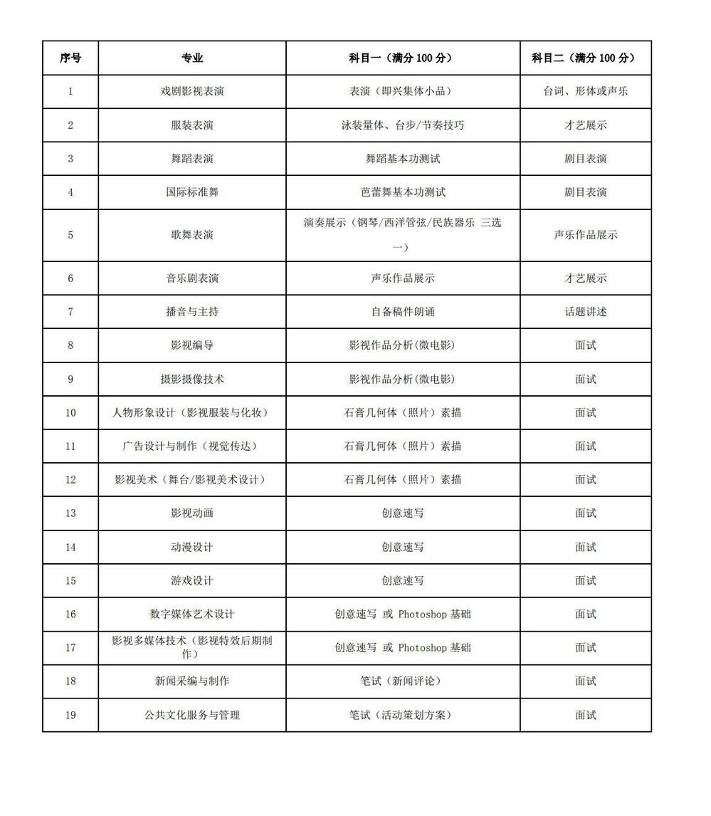 其他专业校考相关事宜详见《招生简章》