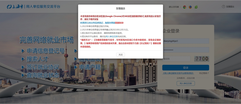 首页→用人单位管理服务平台→信息登记,已有账号登录,无账号注册(记住用户名和密码)。